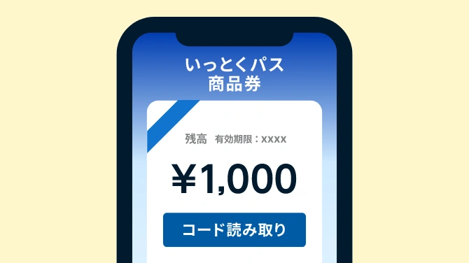 いっとくパス加盟店にて1円単位から、スマホ1つで簡単に